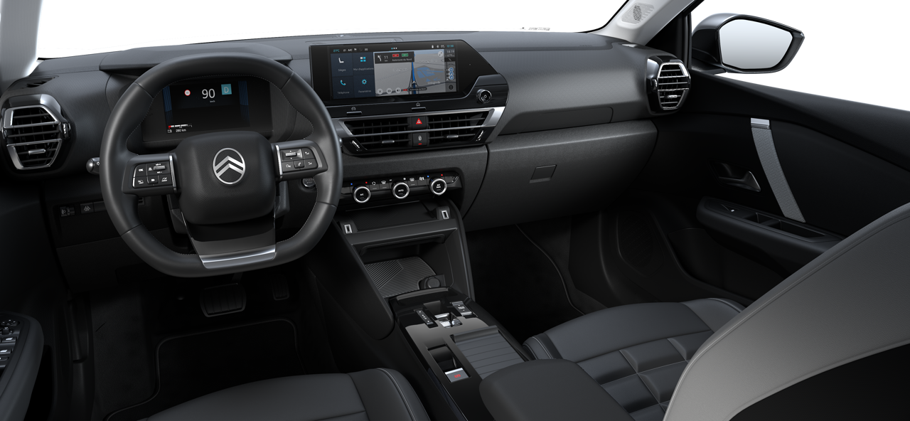 - Écran 10’’ avec Apple CarPlay™ et Android Auto™ sans fil (i) Inclut les services connectés suivant : Connect One (abonnement 10 ans inclus) : Appel d’urgence et assistance Citroën, maintenance à distance, E-Remote Control via l’application MyCitroën (pré-conditionnement de la charge et de la température). Connect Plus (abonnement 12 mois inclus) : Reconnaissance vocale naturelle intégrant l’IA ChatGPT et l’application e-ROUTES (Smart Trip Planner) avec miroir d’écran smartphone.